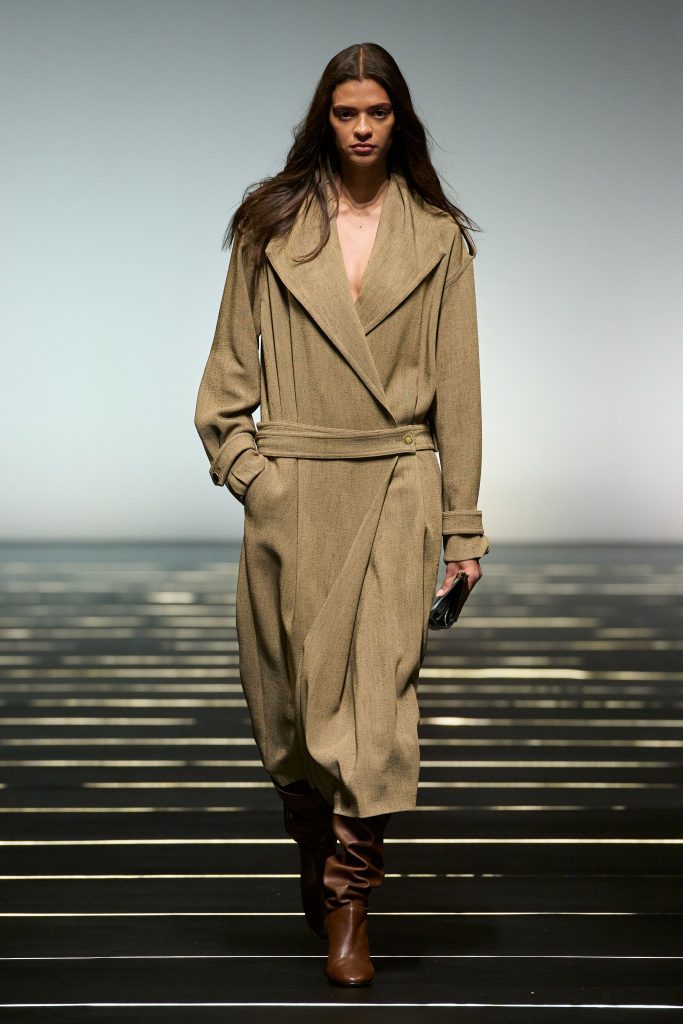 Пока одни продолжают искать идеальное базовое пальто, на подиуме уже все решили за тебя и выбрали вариант на запах. И, судя по последним сезонам, это не просто удобная альтернатива классическому крою, а полноценный долгоиграющий тренд. За последние годы у него тоже случилась своя эволюция. Если раньше пальто на запах ассоциировалось скорее с уютом и минимализмом, то теперь дизайнеры заметно расширили диапазон. Появились подчеркнутые плечи, акцентные пояса, сложные фактуры и почти халатная расслабленность, доведенная до необходимого messy-вайба. При этом оверсайз постепенно уступает более прямым силуэтам – так образ выглядит актуальнее и структурнее.