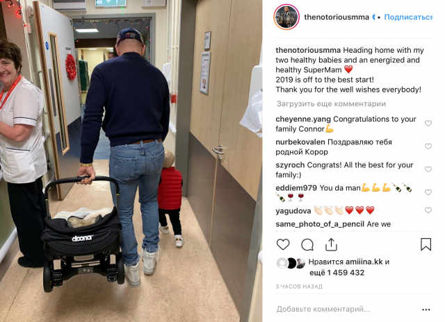 Только что стало известно, что боец UFC Конор Макгрегор (30) стал отцом во второй раз. Спортсмен опубликовал фотографию с сыном Конором и коляской из роддома, которую подписал: «Отправляюсь домой с двумя здоровыми малышами и энергичной и здоровой супермамой. 2019-й начался наилучшим образом! Всем спасибо за хорошие пожелания!». Как мило!
