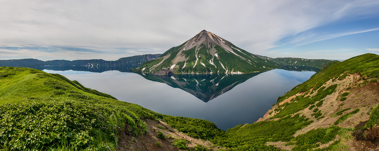 В России есть своя Исландия. Посмотри на эти просторы – ничем не хуже, а может, и лучше модного заграничного пейзажа. Вулкан Креницына считается чудом дальневосточной природы, ведь это самый большой вулкан, который находится внутри другого вулкана. Попасть сюда можно только с помощью рыболовного судна или вертолета, а в 2005 году, когда остров покинули пограничники, отсюда исчез последний оплот цивилизации. Но это место настолько уникально и прекрасно, что туристы не жалеют сил и средств, чтобы увидеть его.