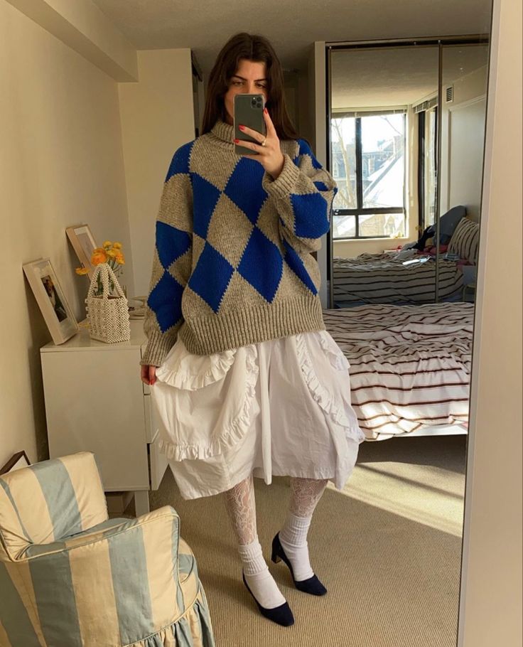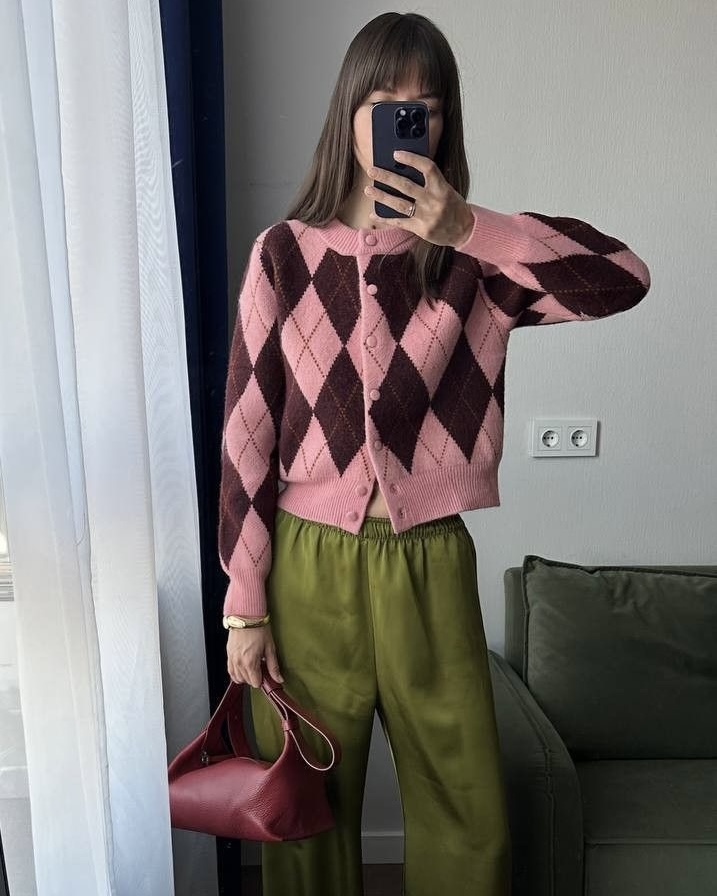Фэшн-инфлюенсеры подхватили тренд раньше всех – и, пока он не успел приесться, активно вводят его в свои образы. Их любимый айтем, конечно же, – свитер с ромбовидным паттерном. Он идеально смотрится и с мини-юбкой, поддерживая эстетику преппи, и с шерстяными брюками, и даже с винтажными джинсами. Мы собрали для тебя 8 образов от фэшн-энтузиастов, чтобы ты хотя бы ненадолго забыла о горохе.