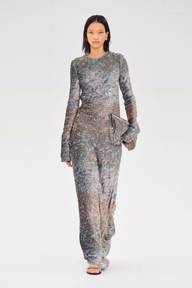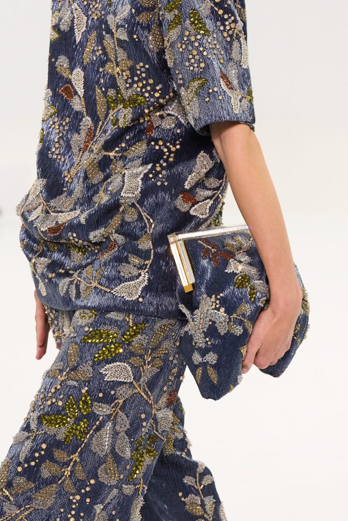 Немного странно, как в широкий обиход идею не пустили раньше – исключение разве что составили лукбуки Bottega Veneta, Chloe, Coperni и Proenza Schoulder актуального или прошлых сезонов. Ким Джонс же пошел ва-банк: в коллекции Fall 2022 Couture мы видим сумки, продолжающие цвет или принты нарядов, повсеместно. И выглядит такой прием весьма органично и даже свежо – времена, когда аксессуар должен стать обязательным акцентом в образе, уже изрядно наскучили. Как говорится, не нужно изобретать велосипед. Достаточно найти простую идею и мгновенно ее воплотить. Браво, Ким.