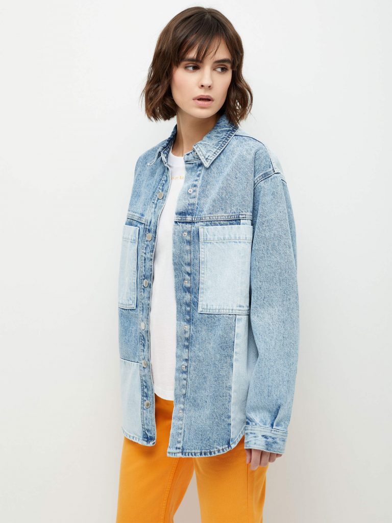 Джинсовая рубашка пэчворк, 4 599 р. (sela.ru)