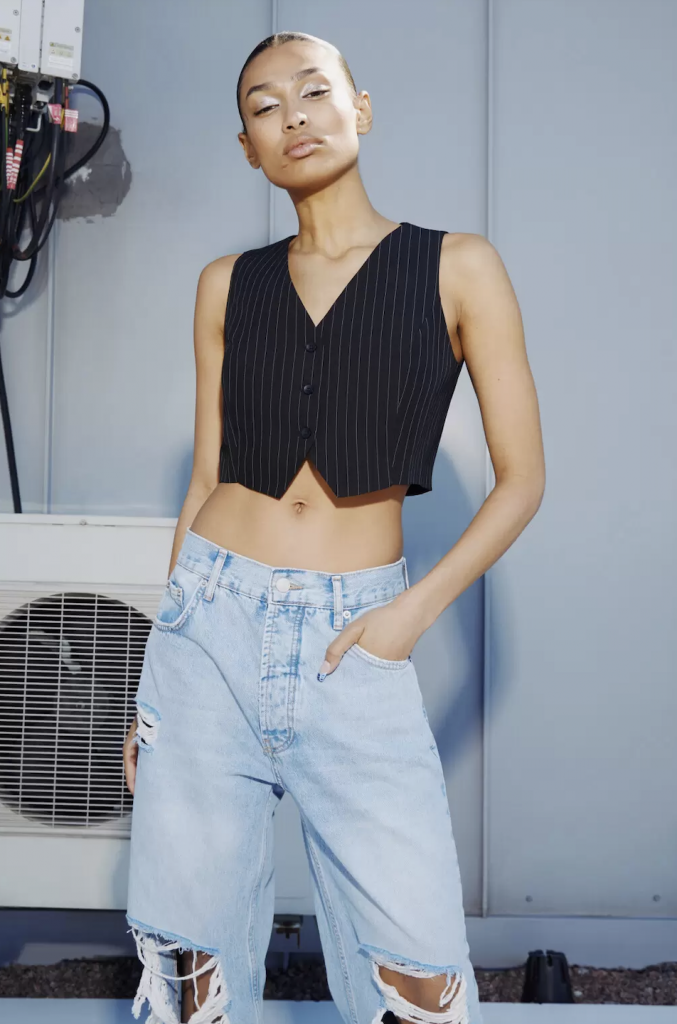 Первая ласточка от отечественной компании Melon Fashion Group, которая стремится заменить (и уже на ура заменяет) конгломерат Inditex. Ставим на топ-кроше, который уже успела примерить инфлюенсер Мария Червоткина, и широкие джинсы с деликатными разрезами по бокам – еще одна заметная летняя тенденция.