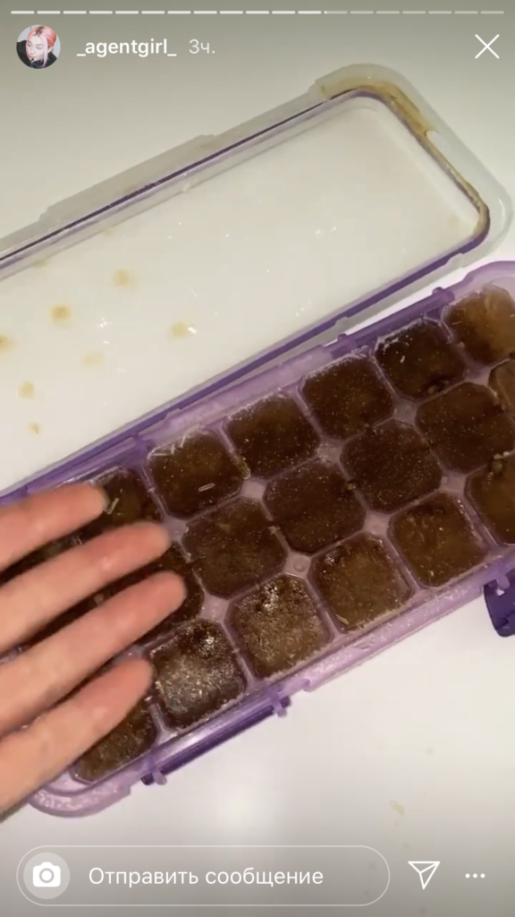 На карантине Настя Ивлеева (29) регулярно выходит в прямые эфиры со звездами и постит кучу Stories. На этот раз она поделилась бьюти-секретом: «У меня еще одна полезная привычка, которую я решила выработать с утра. На самом деле она может быть и дневная, и вечерняя, но привычка однозначно топчик. Это отвар ромашки, который разлит по формочками и заморожен. И каждое утро после того, как я умылась и нанесла крем на лицо, я протираю его кубиком льда из ромашки. Вы знаете полезные свойства, я не буду перечислять, но это топ».