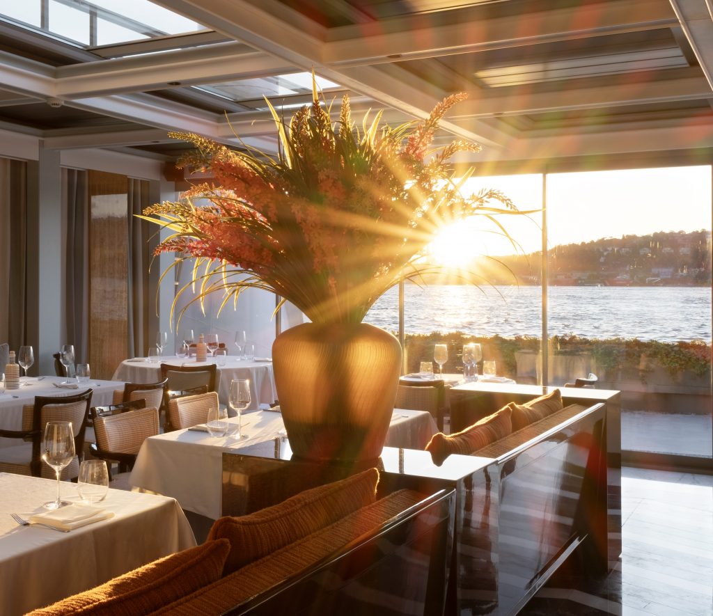 Вдохновившись изображениями отеля на букинг-сервисе, редактор забронировал двухэтажный номер с видом на Босфор. Подкупило наличие террасы, камина и собственной парной. Трансфер до отеля был совершен на лодке – так удалось лучше рассмотреть местные красоты. Добравшись до места, редактор быстро зарегистрировался, оставил чемодан и, переодевшись в вечерний наряд, отправился познавать гастрономические локации. На территории отеля находятся рестораны с разнообразными кулинарными концепциями.