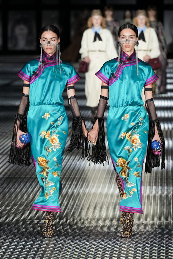 Путешествие в Twinsburg: близнецы на подиуме, отсылки к японским народным костюмам и коллаборация с «Гремлинами» на показе Gucci