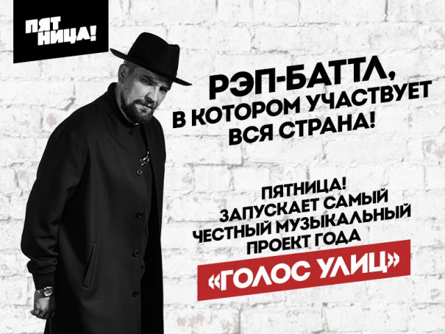 Кажется, рэп-батлы перебираются на телевидение: телеканал «Пятница!» объявляет кастинг в проект «Голос улиц». Это будет самый масштабный рэп-батл страны! Да ещё и судить его будут Баста (37) и Саша Ресторатор (29) (создатель Versus battle)! Сейчас любой хип-хоп или рэп-исполнитель может принять участие в онлайн-кастинге. Нужно выложить видео со своим треком в социальной сети ВКонтакте с хэштегом #ГолосУлиц. Выбранные народом участники попадут в шорт-лист проекта и будут приглашены на кастинг в Москву.