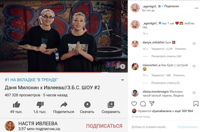 Cпустя всего несколько часов после выхода видео на YouTube Настя рассказала в Instagram, что новый выпуск шоу набрал больше 400 тысяч просмотров и стал номером 1 в трендах сервиса.