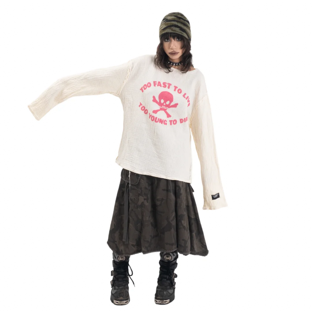 27+ March – молодой российский бренд, который работает не с трендами, а с состоянием. Его визуальный язык ближе к манифесту, чем к привычной модной презентации: черно-белая графика, рваные надписи, следы ручной работы и ощущение намеренной незавершенности. В основе бренда – идея переосмысления одежды как личного высказывания. Здесь много про внутренний конфликт, взросление, сомнение и попытку зафиксировать момент «до» и «после». 27+ March не стремится быть удобным или универсальным, он скорее про честность и уязвимость, когда одежда становится продолжением мыслей, а не просто оболочкой.