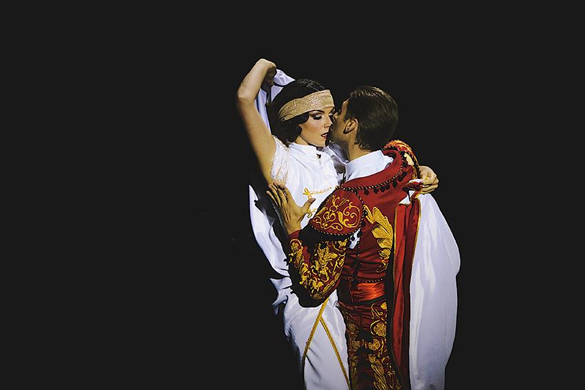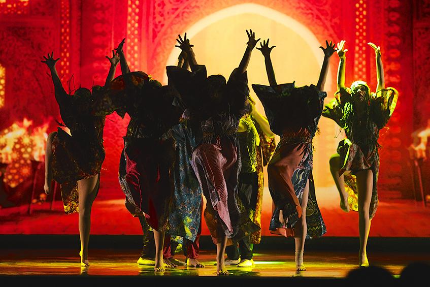 Все действие на сцене происходит очень быстро: то зритель принимает участие в настоящем празднике с танцами, песнями и калейдоскопом роскошных костюмов, то вдруг окунается в диалог двух героев, которые говорят (или трогательно поют) о чем-то глубоком и личном.