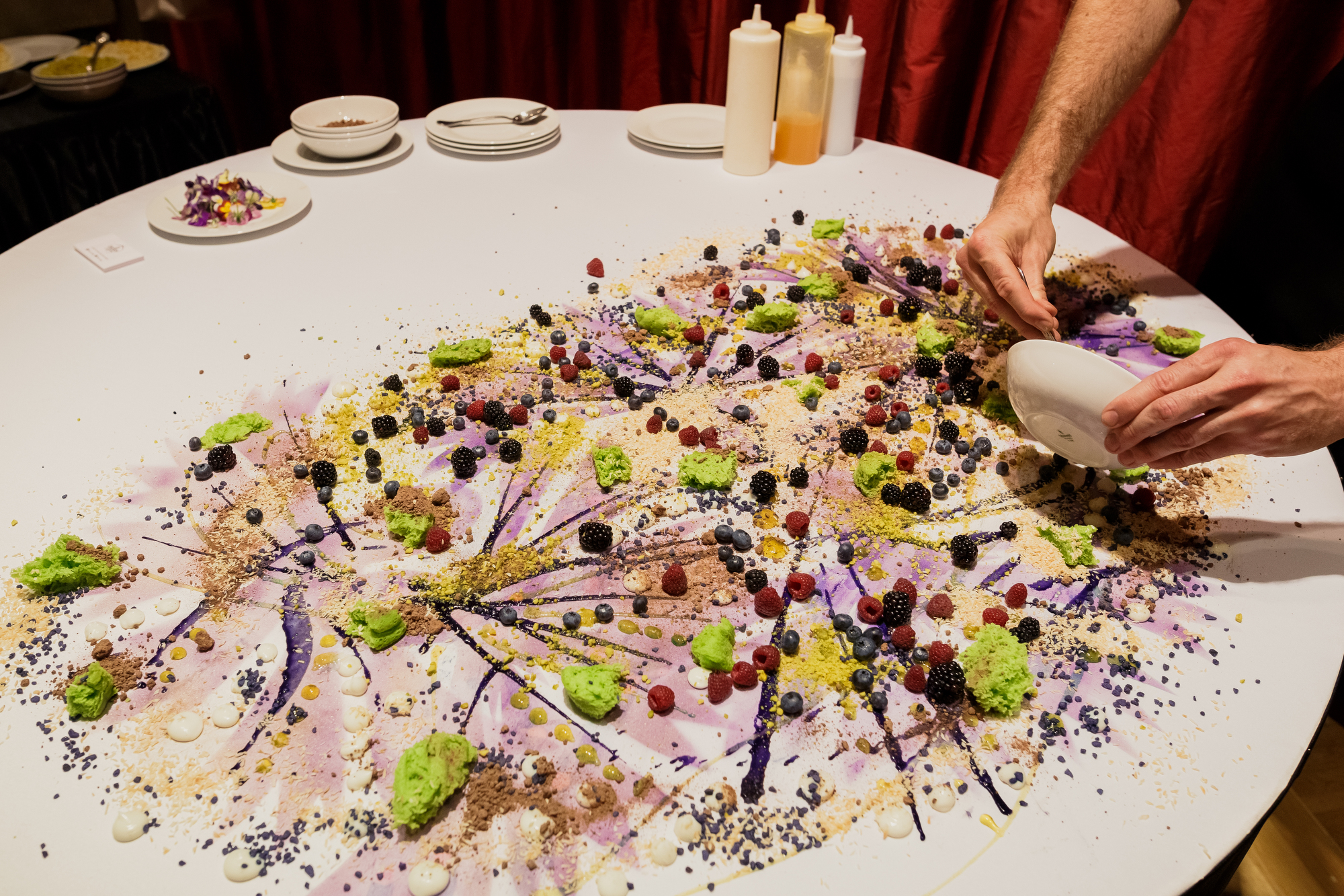 Обалденный фуршет в виде ягод, сладостей и цветов (!) создавался прямо на глазах у гостей.