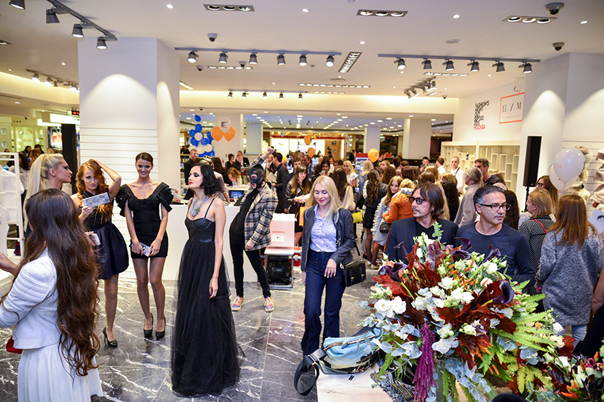 Теперь спешим в ЦУМ! На первом этаже, в зоне аксессуаров, располагается диджейский пульт и под музыку выплясывают люди в жутковатых масках – неожиданно!