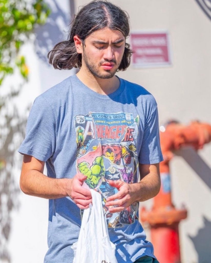Сын Майкла Джексона выглядел невозмутимым, забирая мексиканскую еду из ресторана Sharky’s в Калифорнии. Для прогулки Бланкет выбрал повседневную одежду: выцветшую серую футболку с изображением Мстителей и зеленые спортивные шорты.