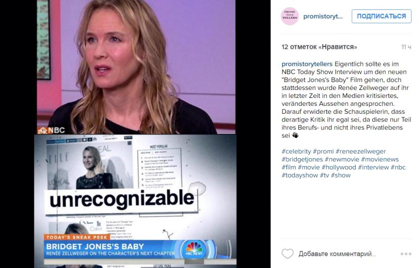 На днях Рене стала гостьей программы The Today Show, и ее буквально было невозможно узнать! Щеки звезды неожиданно впали, а нос стал другим. Но, как оказалось, звезда не только не боится перемен во внешности, но и не собирается оправдываться за них.