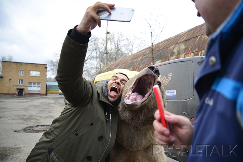 Медведь стал главной звездой на съемочной площадке в этот день. На его счету работа в более чем 50 кинокартинах, и он очень опытный актер. Но у мишки есть шуба, а вот Тимати и L'One пришлось несладко. Погода во время съемок была вполне традиционной для ранней весны, и ребятам пришлось работать на холоде в одних рубашках.
