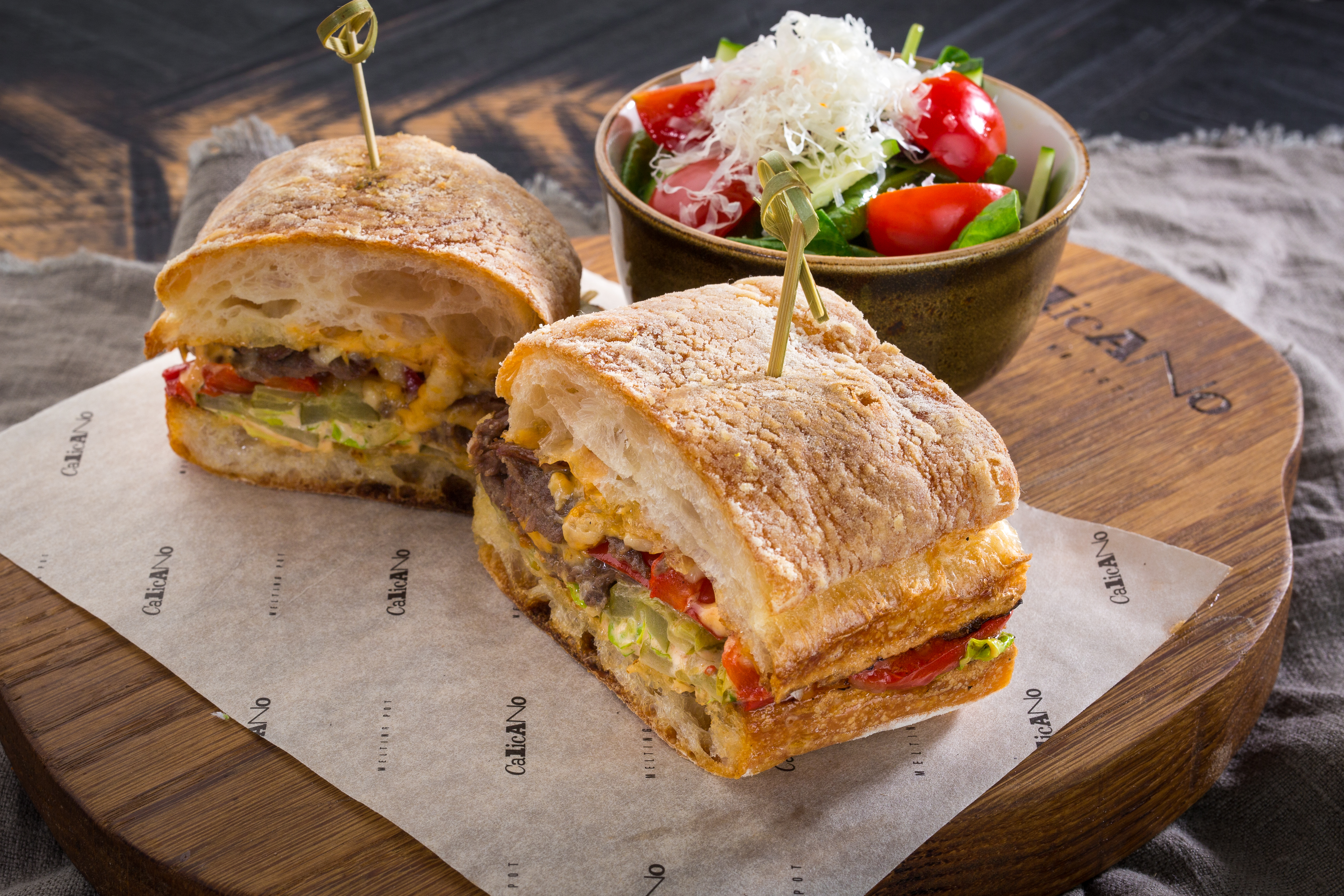 В Calicano довольно большой выбор всевозможных сэндвичей и бургеров, которые так любят жители Америки. «Калифорния чиз стейк» (570 р.) и «Каликано-бургер» (610 р.) мне понравились больше всего. Из горячего рекомендую сочный стейк стриплойн на гриле (1290 р.) и неплохой тайский сибас в панировке тапиока (690 р.).