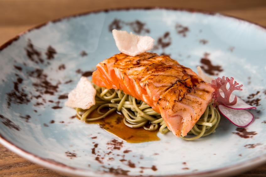 Не могу сказать, что меню в «Ходя Ходя» сильно впечатлило меня. Все довольно стандартно. Вообще, ресторан, строго говоря, не совсем китайский, скорее, просто азиатский. Например, здесь подают тайский том ям (350 р.), корейский холодный суп кукси (350 р.) и лосось с лапшой с экстрактом зеленого чая из Японии (450 руб.), который, кстати, был весьма неплох.