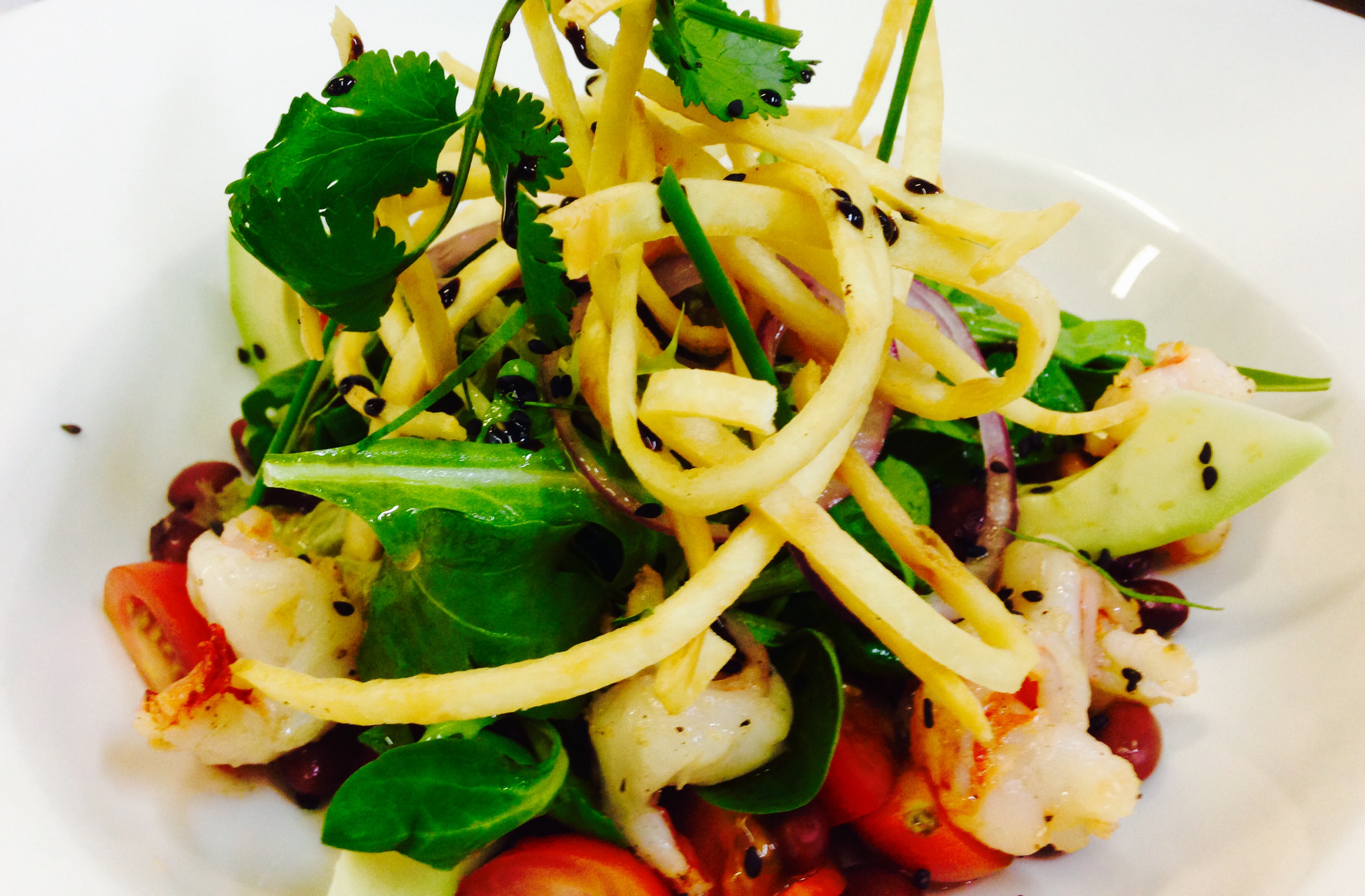 Мишель Ломбарди, француз итальянского происхождения, живет в Москве уже не первый год, за это время он довольно неплохо стал разбираться во вкусах и предпочтениях москвичей. Например, в разделе «Салаты» не обошлось без цезаря с курицей или креветками (490/520 р.) и капрезе (490 р.), есть и фирменный салат «Юг 55» (790 р.), довольно свежий, с томатами, авокадо, сливой и камчатским крабом. Также здесь можно попробовать французский луковый суп с запеченным сыром (320 р.) и мисо с лапшой и креветками (360 р.).
