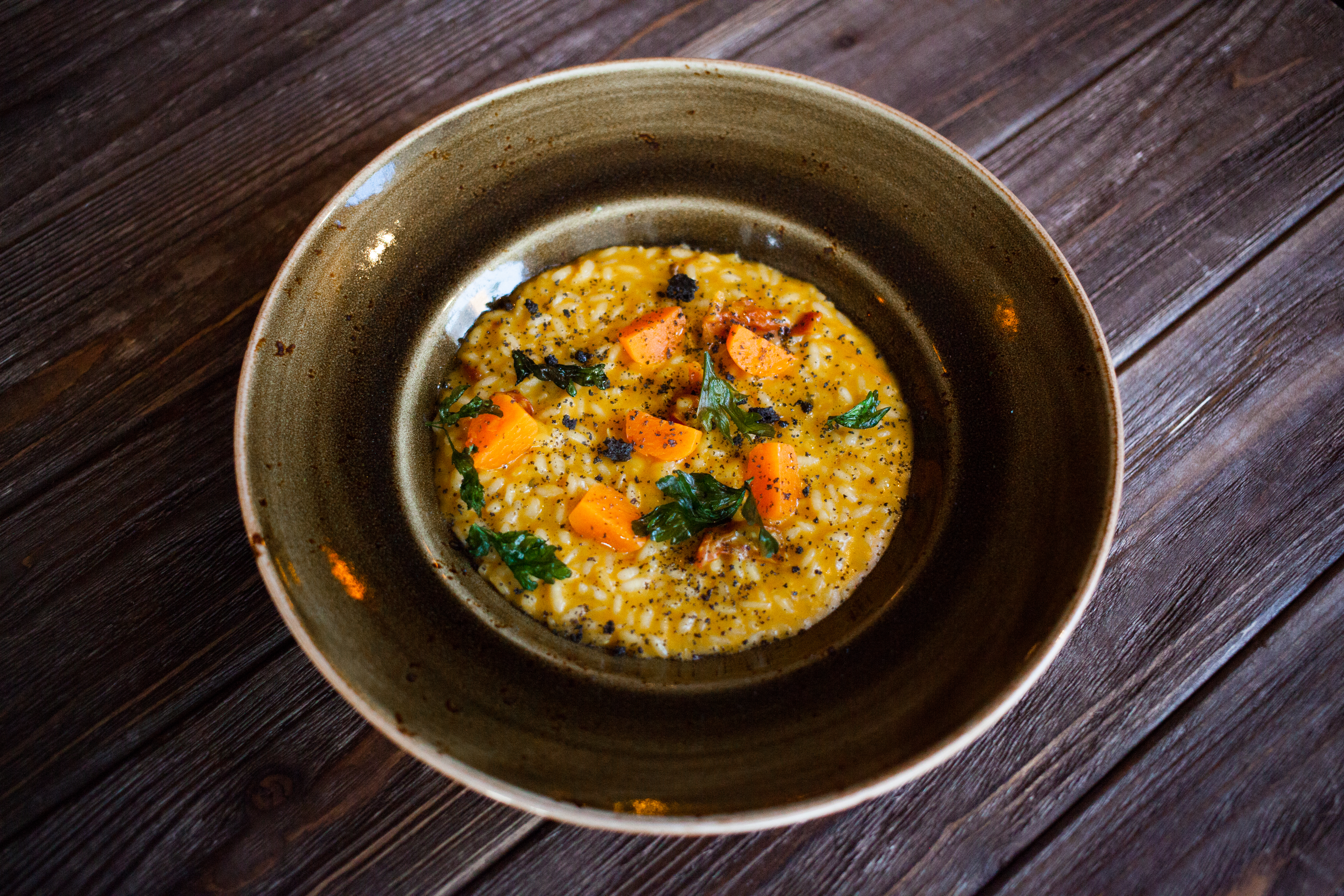 Кроме того, тебя ждет большой выбор пасты и ризотто. Попробуй равиоли с крабом (790 р.) или тальятелле с курицей и ароматом трюфеля (490 р.). Из ризотто обрати внимание на варианты с томатами и сыром пекорино (550 р.), а также с уткой и голубым сыром (560 р.).