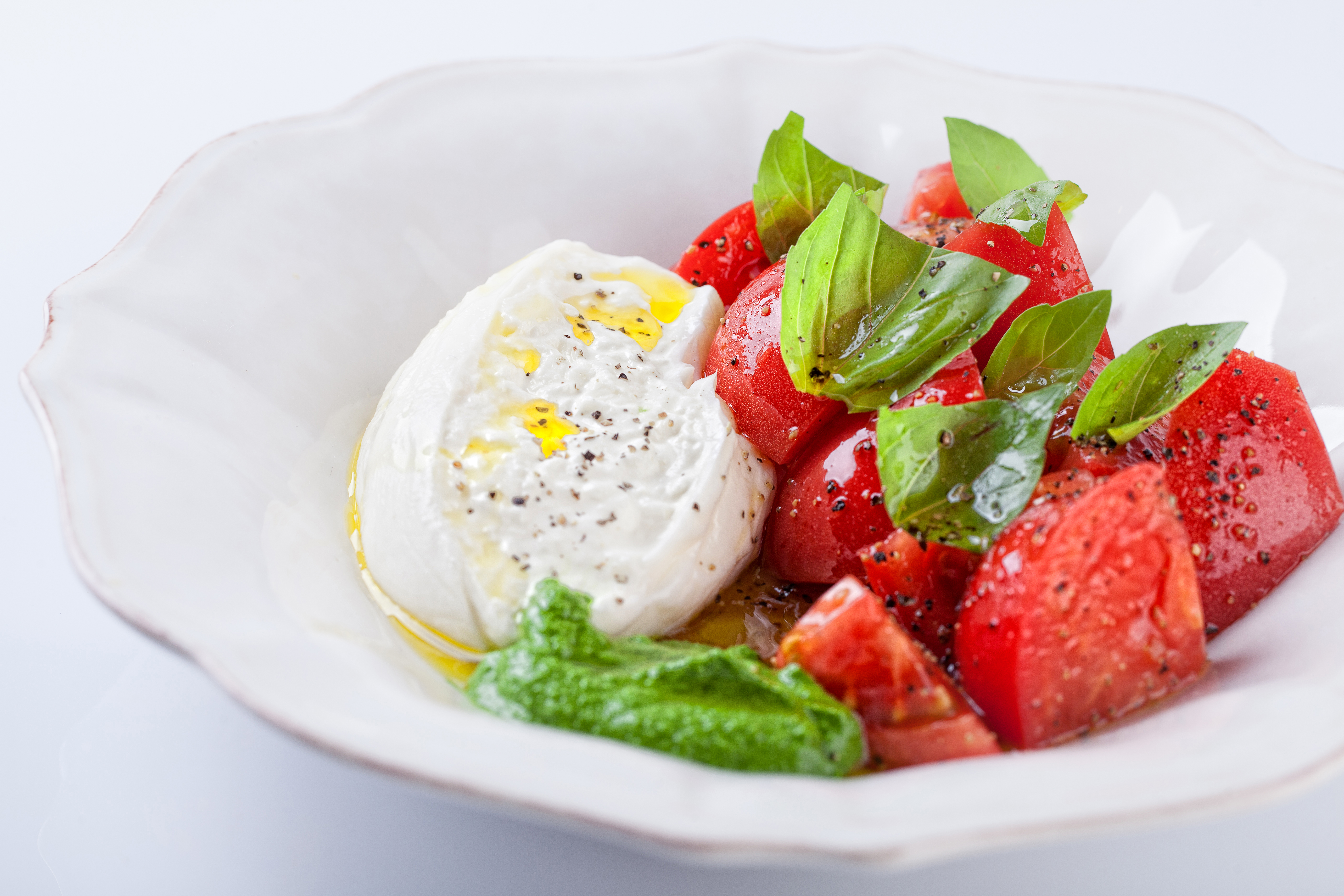 В меню нет ничего лишнего. Все по делу. На закуску советую попробовать овощной букет с козьим сыром (940 р.), который здесь подают на льду, и превосходную осетинскую буррату (700 р.).