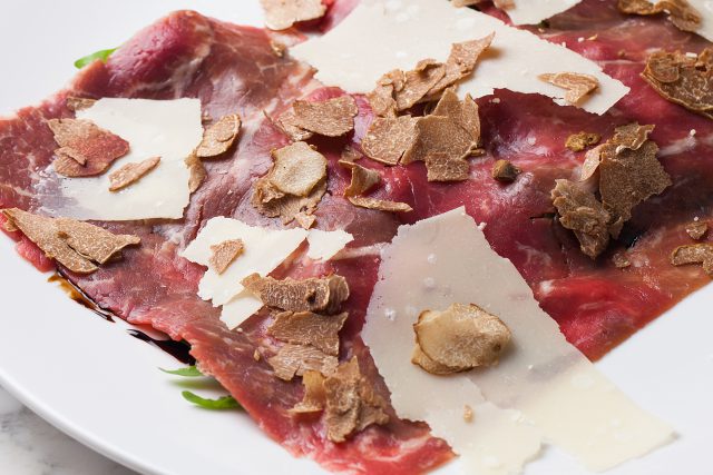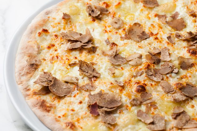 Тебе на выбор: карпаччо из говядины (2500 р.) – 4 гр трюфеля, пицца с сырами качотта и бри (2750 р.) – 5 гр трюфеля, фермерское куриное яйцо с двумя желтками (1500 р.) – 3 гр трюфеля, и многое другое. К любому блюду можно дополнительно добавить трюфель (1 гр – 850 руб.).