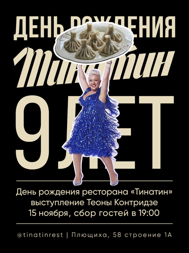 И отмечать праздник «Тинатин» будет с размахом! Выступление известной грузинской исполнительницы Теоны Контридзе (концерт начнется в 21:30), поздравление от Тины Канделаки, розыгрыш подарков и большой торт — отличный план на вечер 15 ноября.