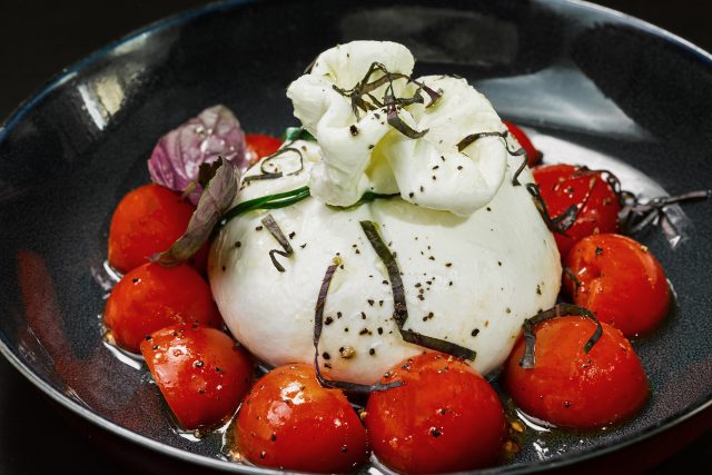 Запеченные устрицы с фуа-гра и икрой морского ежа, приготовленный на робате чилийский сибас с ризотто, якитори тэрияки с хумусом из бобов эдамаме, каре ягненка в ореховом фурикакэ приехали из лондонского Sumosan. А о Дубае в столичном меню напомнит буррата с камчатским крабом и томатами.