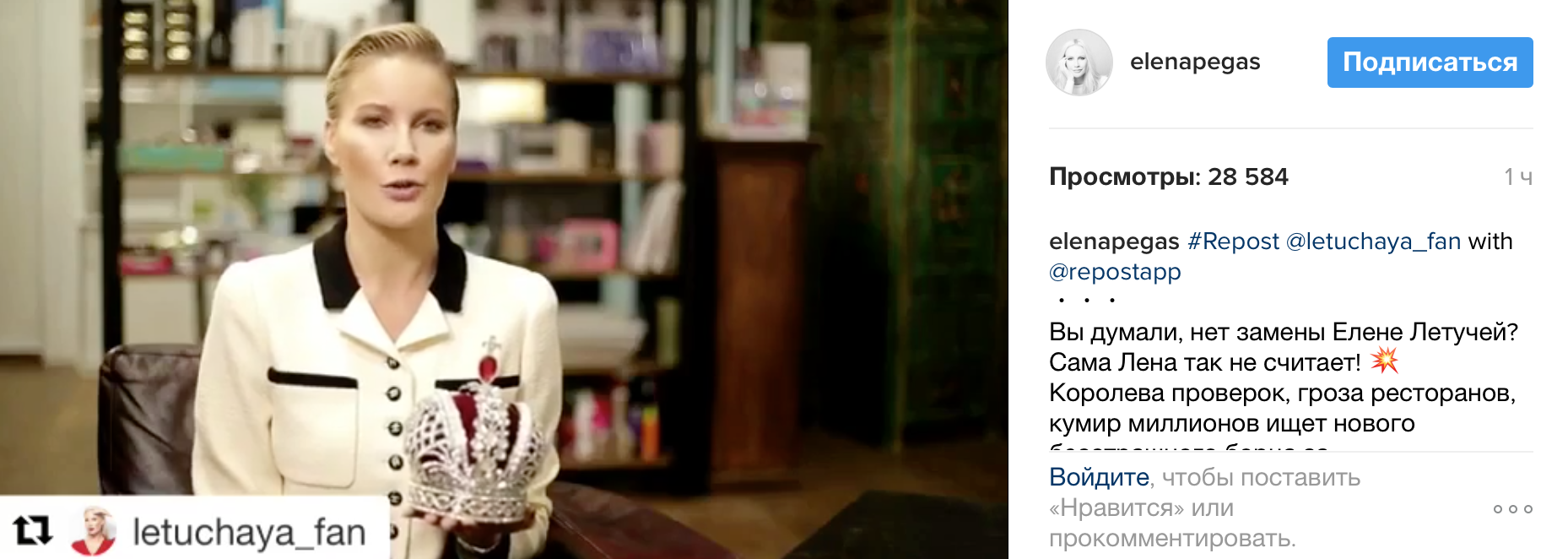 «Вы думали, нет замены Елене Летучей? Сама Лена так не считает! Королева проверок, гроза ресторанов, кумир миллионов ищет нового бесстрашного борца за справедливость, и делает тебе фанта-сти-ческое предложение! Получи уникальную возможность стать участником шоу #ШколаРевизорро на телеканале. Команда экспертов под руководством Летучей соберет лучших учеников, чтобы определить единственного достойного называться «Новым Ревизорро». Им может стать кто угодно: как мужчина, так и девушка, как повар, так и стюардесса!» — такой призыв появился под видео в профиле Лены.