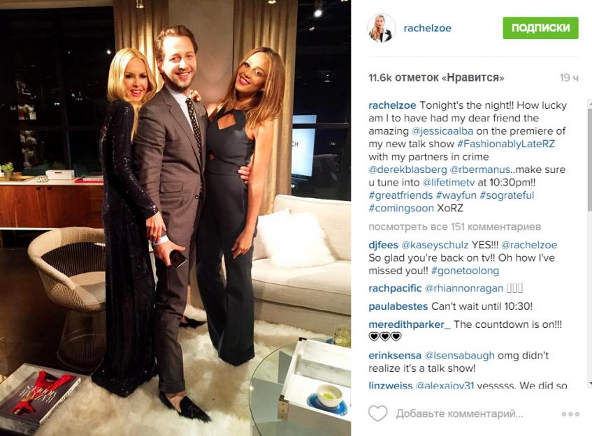 Первый эпизод, гостем которого стала Джессика Альба (34), вышел на канале Lifetime 24 сентября. Согласно замыслу создателей, Зоуи и соведущие — писатель Дерек Бласберг (33) и ее супруг Роджер Берман — будут обсуждать последние модные новинки и тенденции с приглашенными звездами.