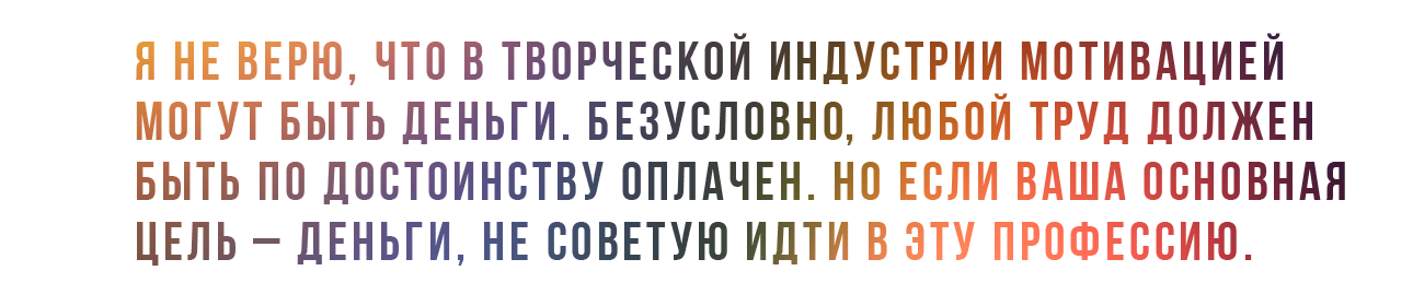 Действительно, ощущение, что режиссер иногда тащит на себе все. Повезет, если рядом окажутся единомышленники. Эта профессия означает постоянную работу в команде, поэтому надо любить людей и дело, которым занимаешься. Еще наша работа подразумевает ненормированный день – он может начаться в девять утра одного дня, а закончиться в пять утра следующего, так что иногда людям из кино сложно завести нормальные отношения, надо быть к этому готовым.