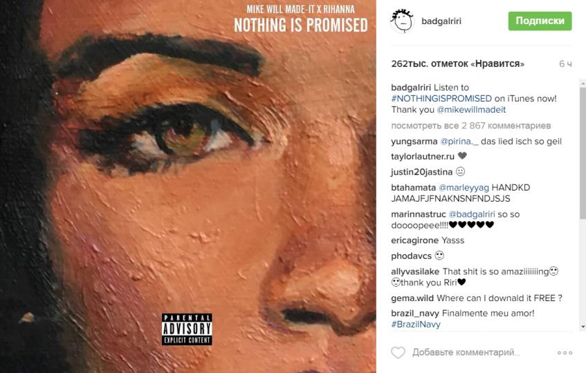 После выхода альбома ANTI Рианна (28) решила не сбавлять оборотов и уже радует поклонников новыми работами, которые моментально становятся хитами. Вот и сегодня певица представила очередной сингл под названием Nothing Is Promised, записанный вместе с электронным музыкантом Майклом Леном Уильямсом II (27), более известным под псевдонимом Mike Will Made It.