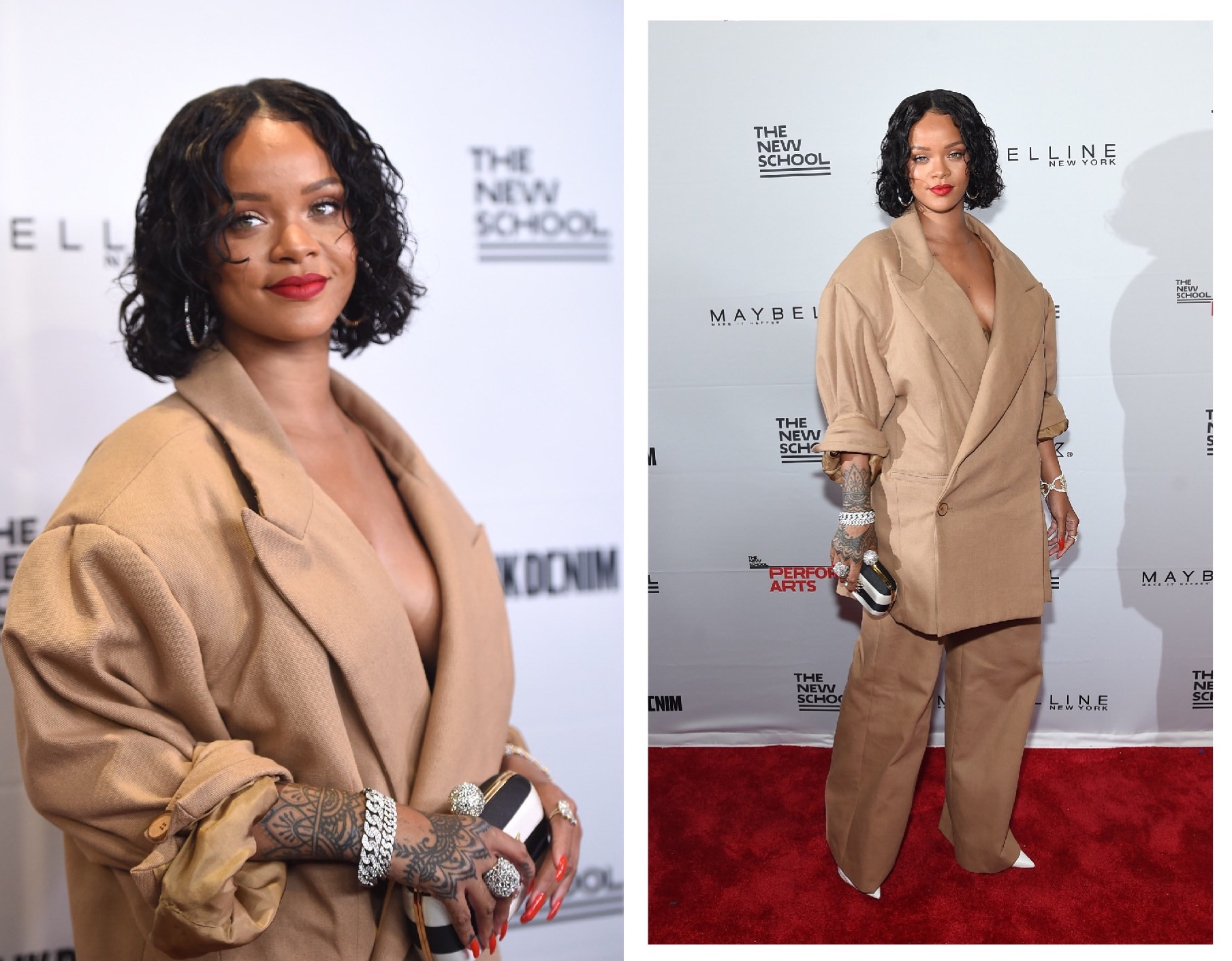 За наградой в школу Parsons School of Design Benefit Рианна (29) пришла в брючном костюме over size от Matthew Adam Dolan.