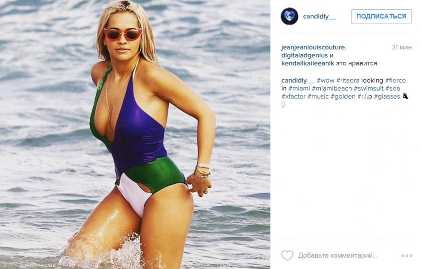 Недавно папарацци застали звезду на одном из пляжей Калифорнии, куда она приехала в минувшие выходные. Девушка похвасталась своей великолепной фигурой в закрытом трехцветном купальнике с глубоким декольте, который великолепно подчеркивал все прелести певицы.