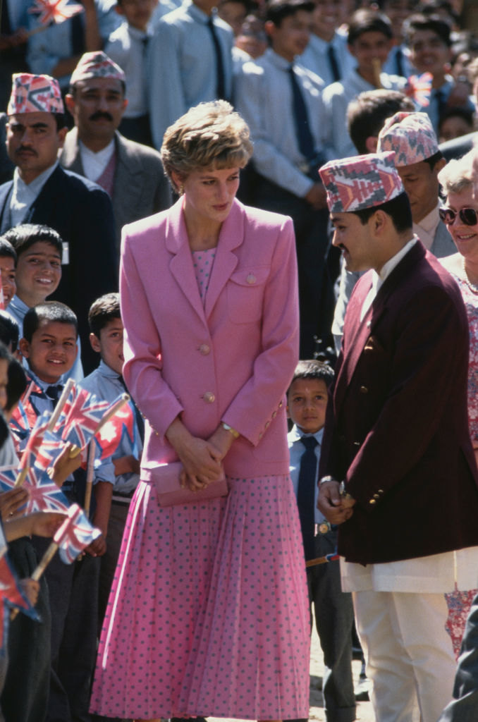 В свое время этот цвет обожала и Леди Ди (в гардеробе принцессы мы насчитали 15 образов). Наш фаворит – розовая рубашка и приталенный клетчатый костюм. Но и розовую шляпку принцессы мы не оставили без внимания.