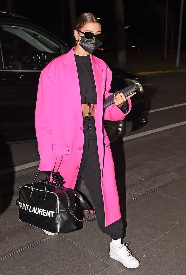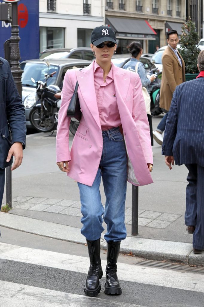 Розовый обожают и современные иконы стиля. Хейли Бибер сочетает пальто цвета фуксия со спортивным костюмом, Белла Хадид носит розовую рубашку с джинсами и грубыми ботинками, а Роузи Хантингтон-Уайтли дополняет платье-комбинацию лиловым пиджаком.