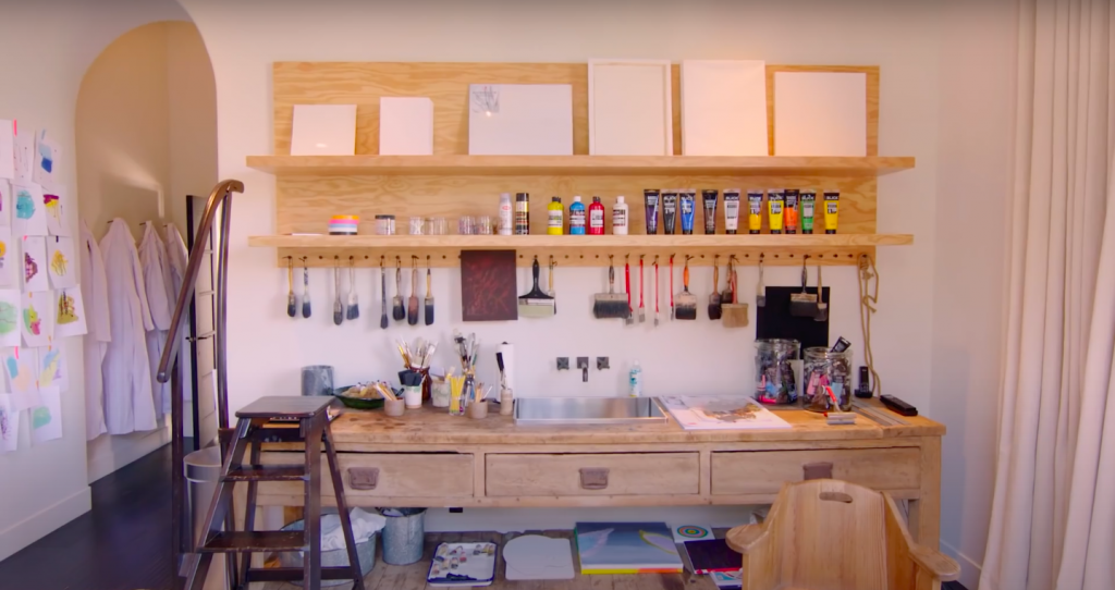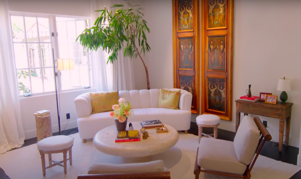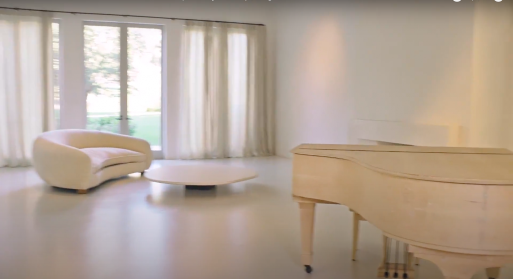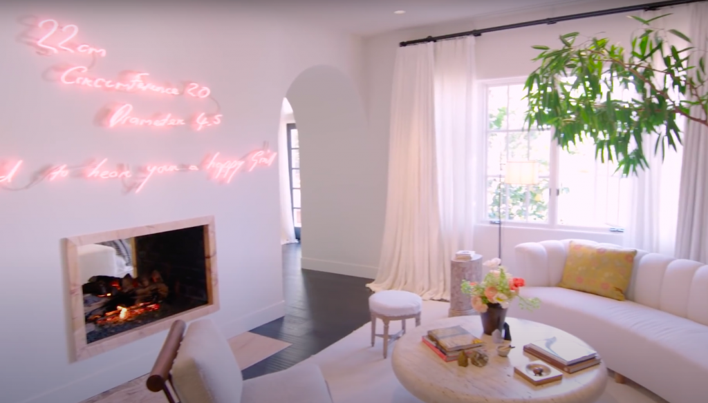 Впервые общественность увидела конечный вариант в рубрике 73 questions для журнала Vogue в 2019 году. Белые стены, минимум мебели и произведения искусства на стенах. Да, такой интерьер однозначно выделяет дом Ким среди особняков ее семьи.