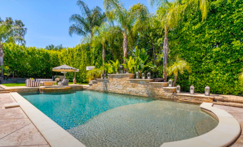 В доме семь спален и 10 ванных комнат, а еще огромная территория в 2300 квадратных метров с зоной для барбекю, детской площадкой, бассейном и внутренним двориком.
