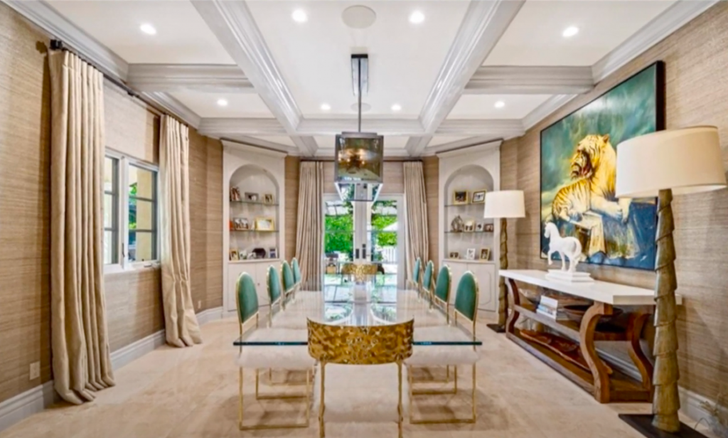 На смену кричащим цветам пришли натуральные оттенки коричневого, бежевого и серого. Всего в доме 7 спален и 14 ванных комнат, а еще несколько гостевых апартаментов.