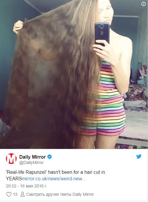 В Сети Дарью уже прозвали «Русская Рапунцель», и это не удивительно, ведь длина ее волос больше 160 см, чтобы побить мировой рекорд Губановой не хватает всего 40 см. Однако, внимание западных СМИ девушка все-таки привлекла. О «Русской Рапунцель» написали британские Mirror и Daily Mail.