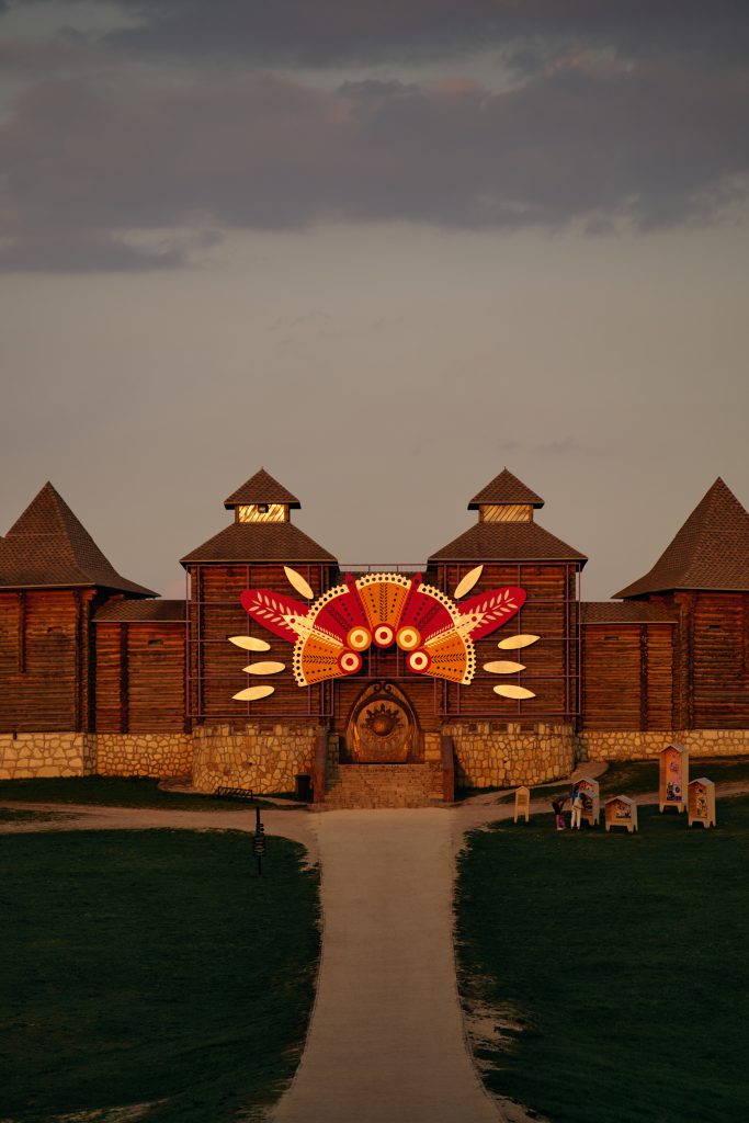Если ты думал, что активности на этом закончились, то нет, после сафари мы отправились дальше изучать окрестности. Так, нам показали будущий пляж, который сейчас активно готовят к сезону, купель с источником мудрости (существует легенда о том, что если выпить воды из девяти источников, то можно обрести вечную мудрость. Если же такой вариант кажется долгим, то можно забронировать номер в отеле, где эта же вода аккуратно разлита по бутылочкам). А также огромный помидор, который служит развлечением для юных посетителей парка (летом там устраивают тематический квест по мотивам книги «Алиса в стране чудес»), и деревянную крепость, где проходят различные выставки и фестивали.