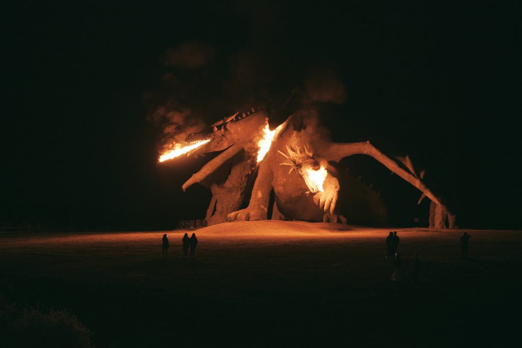 После ужина нас ждала одна из знаковых фишек парка — Горыныч — огромный сказочный персонаж народных сказок, дышащий огнем, стал великолепным завершением вечера.