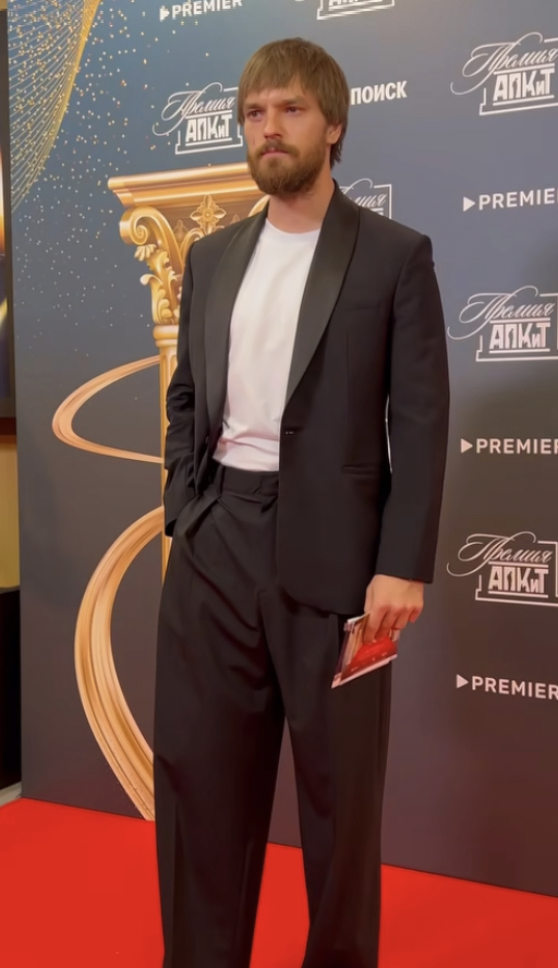 На красной дорожке актер появился в классическом костюме. Отметим новый стиль артиста: он заметно отрастил волосы и бороду (мы даже не сразу его узнали).