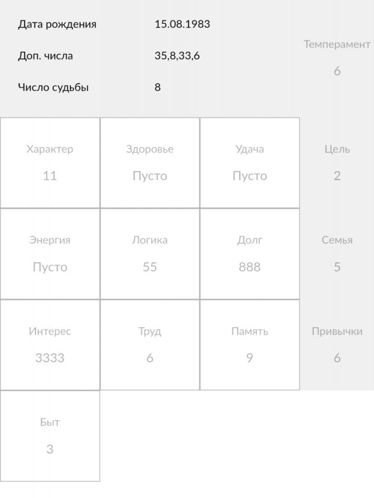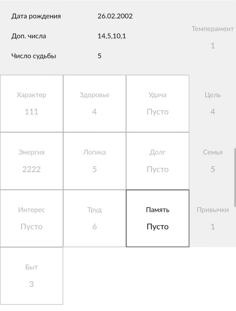 Артист быстро влюблялся в таких, чувствовал эмоциональный и творческий подъем, когда они рядом. Это происходит потому, что он сам относится к тому типу людей, которые быстро теряют интерес ко всему, что становится понятным. Матрицы, в которых сильный сектор «Логика» (55/555) и ослабленный сектор «Память», имеют низкую сенсорную чувствительность. Они склонны слишком много анализировать, а это заставляет быстро терять вкус ко всему.