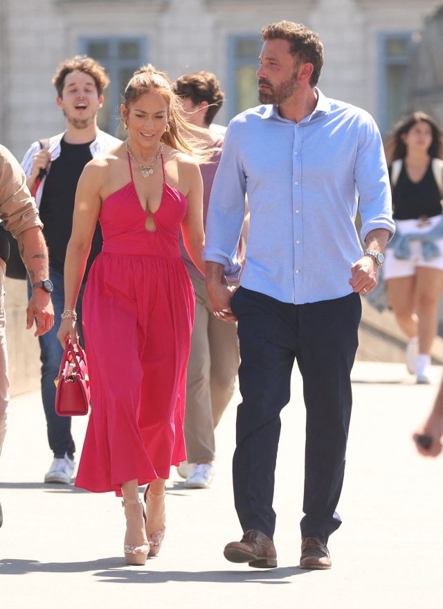 Сегодня пара отправилась на ужин в ресторан Christian Dior, чтобы отпраздновать день рождения Дженнифер (в это сложно поверить, но ей исполнилось 53 года). Именинница надела ярко-розовое платье с декольте и нюдовые босоножки на высокой платформе. Сумка цвета фуксии и массивные золотые украшения дополнили праздничный образ певицы. Бен, в свою очередь, вышел в голубой рубашке, синих брюках и замшевых ботинках коричневого цвета.
