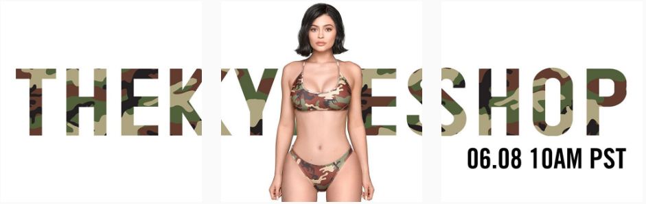 А сегодня вечером Кайли запустит продажу новой коллекции одежды на сайте магазина. Она вся – камуфляжная! Правда, пока известно только как выглядят зажигалки и купальники из этой коллекции – их Кайли показала в Instagram. В рамках промо-кампании она снялась в одном из купальников.