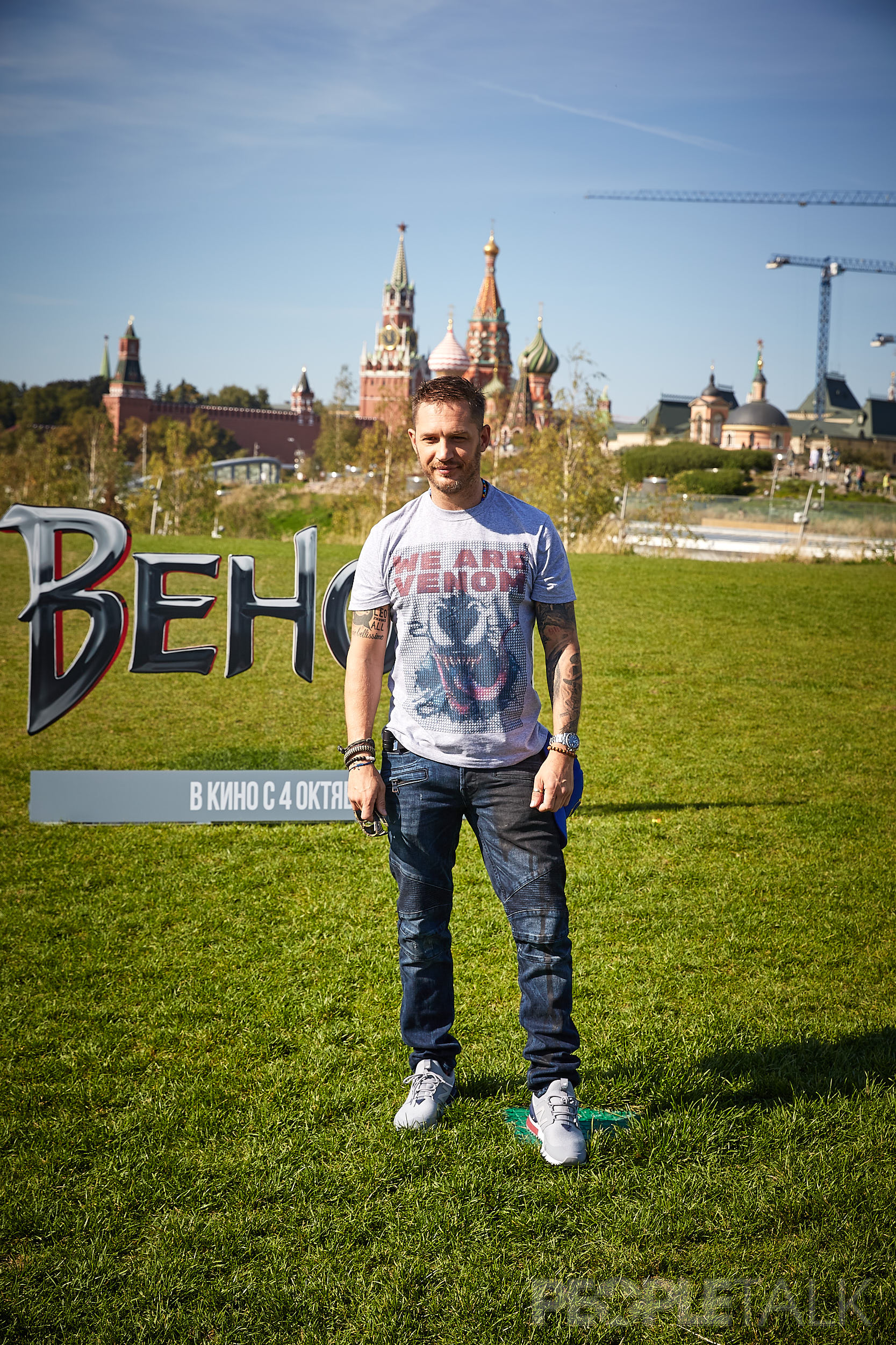 Голливудский актер Том Харди (41) лично прилетел в Москву, чтобы представить российским зрителям свой новый фильм «Веном». Вчера он встретился с самыми преданными фанатами, которым для встречи с кумиром пришлось даже пройти конкурс, а сегодня приехал на фотосессию в столичный парк «Зарядье». После актер отправился в отель «Националь», где провел встречу с журналистами вместе с Артемом Королевым. Кстати, перед «Националем» Тома встречала толпа фанатов, которые надеялись на фото с Харди.