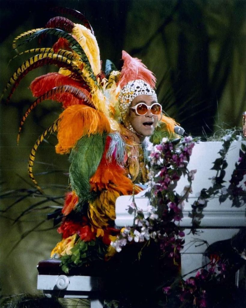 Очень много перьев, очки всех форм и размеров, сатиновые пиджаки, костюмы утки и пчелы – за несколько десятков лет (выступать на сцене он начал в 1970-м) Элтон Джон чем только не удивлял зрителей на концертах. В день рождения певца – сегодня ему исполняется 74 года – собрали самые безумные и крутые образы!