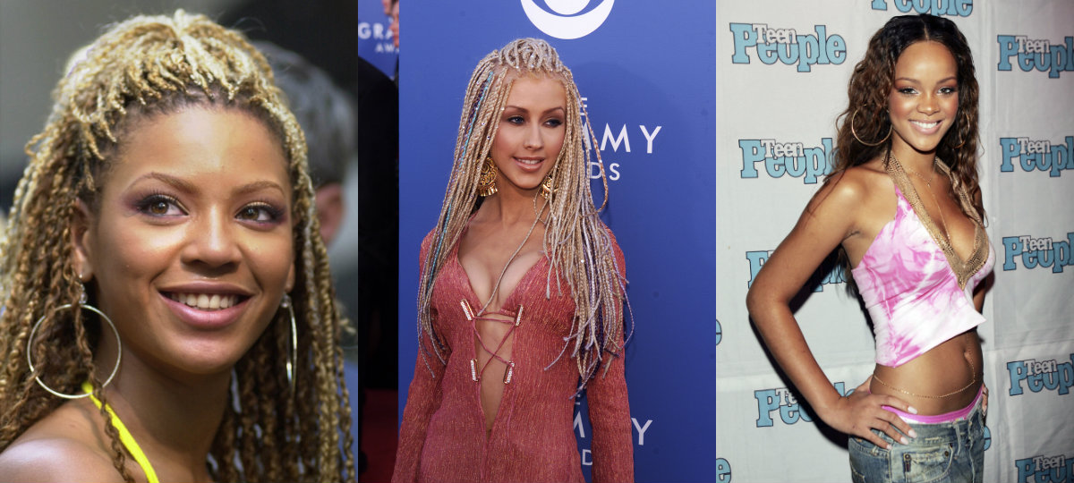 Такой макияж звезды в начале 2000-х дополняли яркими прическами. Косички, цветные пряди, гофрированные локоны – ты только посмотри на эти образы для красных дорожек!