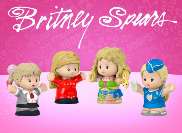Компания Fisher-Price анонсировала коллекционных набор фигурок, посвященный Бритни Спирс. В нем есть школьный наряд певицы из клипа «Baby One More Time», красный комбинезон из «Oops I Did It Again», наряд стюардессы из «Toxic» и разумеется, культовый топ, шорты и змея с MTV VMA 2001 года, пишет Variety.