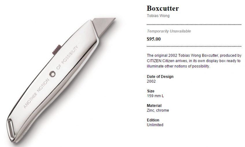 Вдруг принцу придется открывать коробку или разрезать веревку, то для этого он должен использовать не обычный пластмассовый канцелярский нож, а супер нож из нержавеющей стали от дизайнера Тобиаса Вонга.